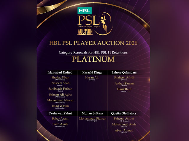 پی سی بی کے مطابق پلیئرز آکشن سے قبل ہر فرنچائز کو مجموعی طور پر 4 کھلاڑی برقرار رکھنے کی اجازت ہوگی، جس میں ہر کیٹیگری سے صرف ایک کھلاڑی کو ریٹین کیا جا سکے گا۔